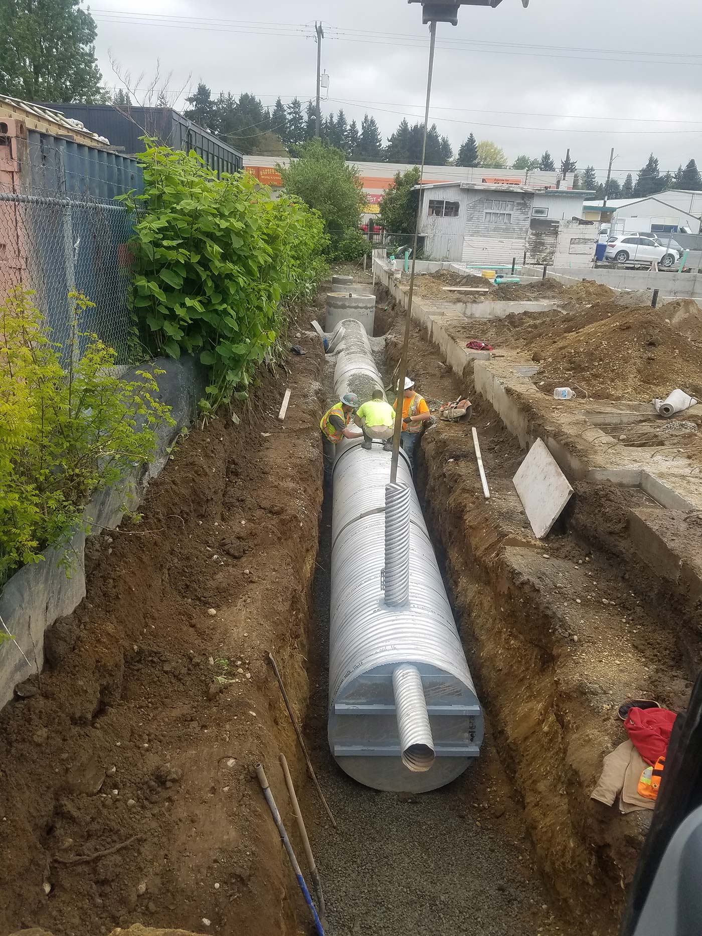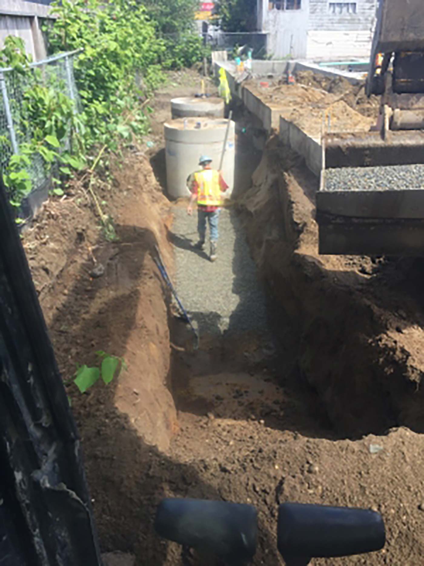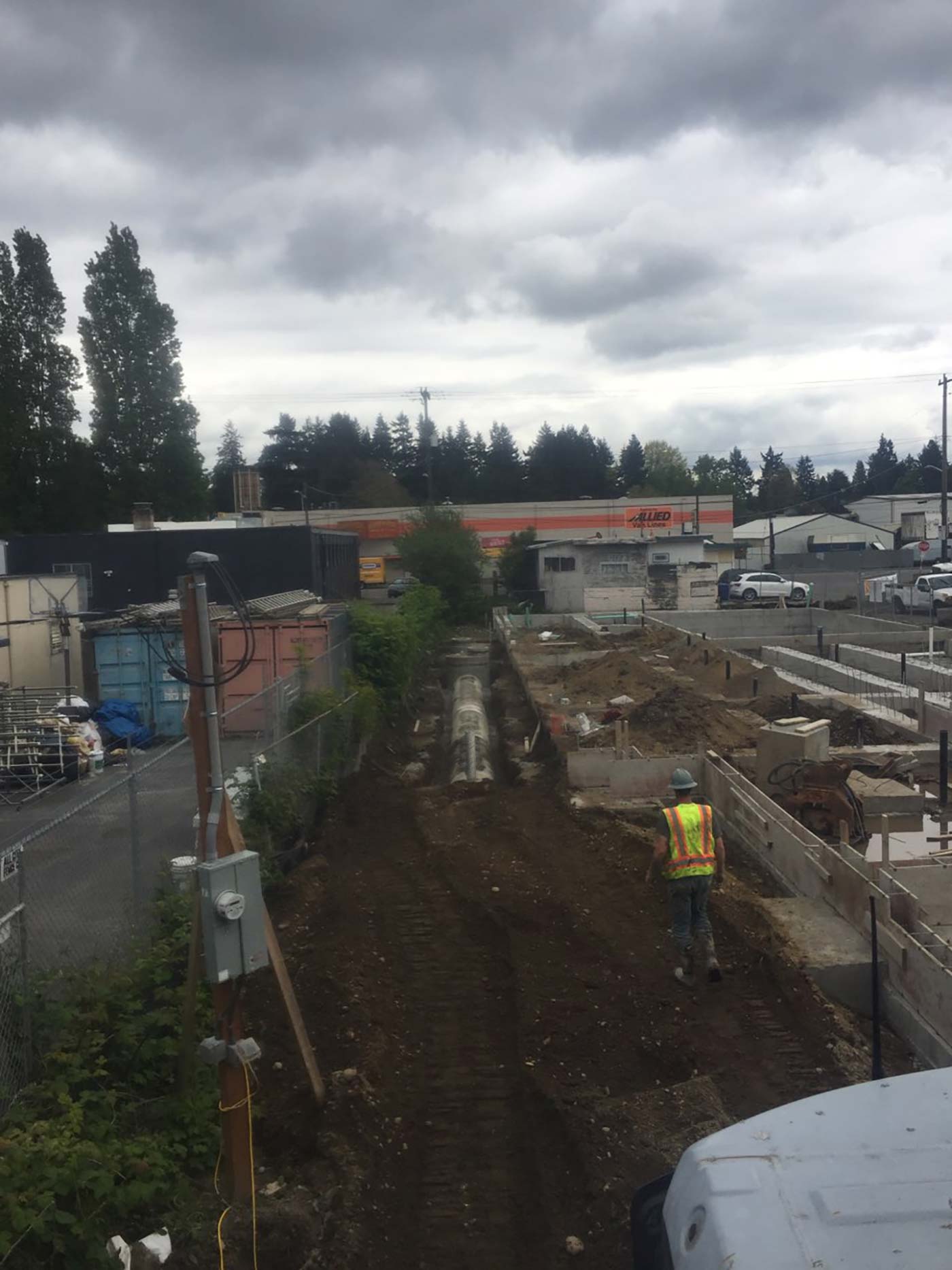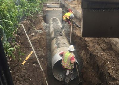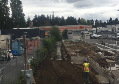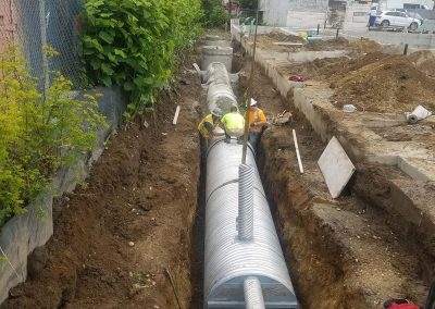 Sitework & utility extensions for new 100+ unit infill apartment complex. Extensive SIP utility work in Street with complete road restoration.