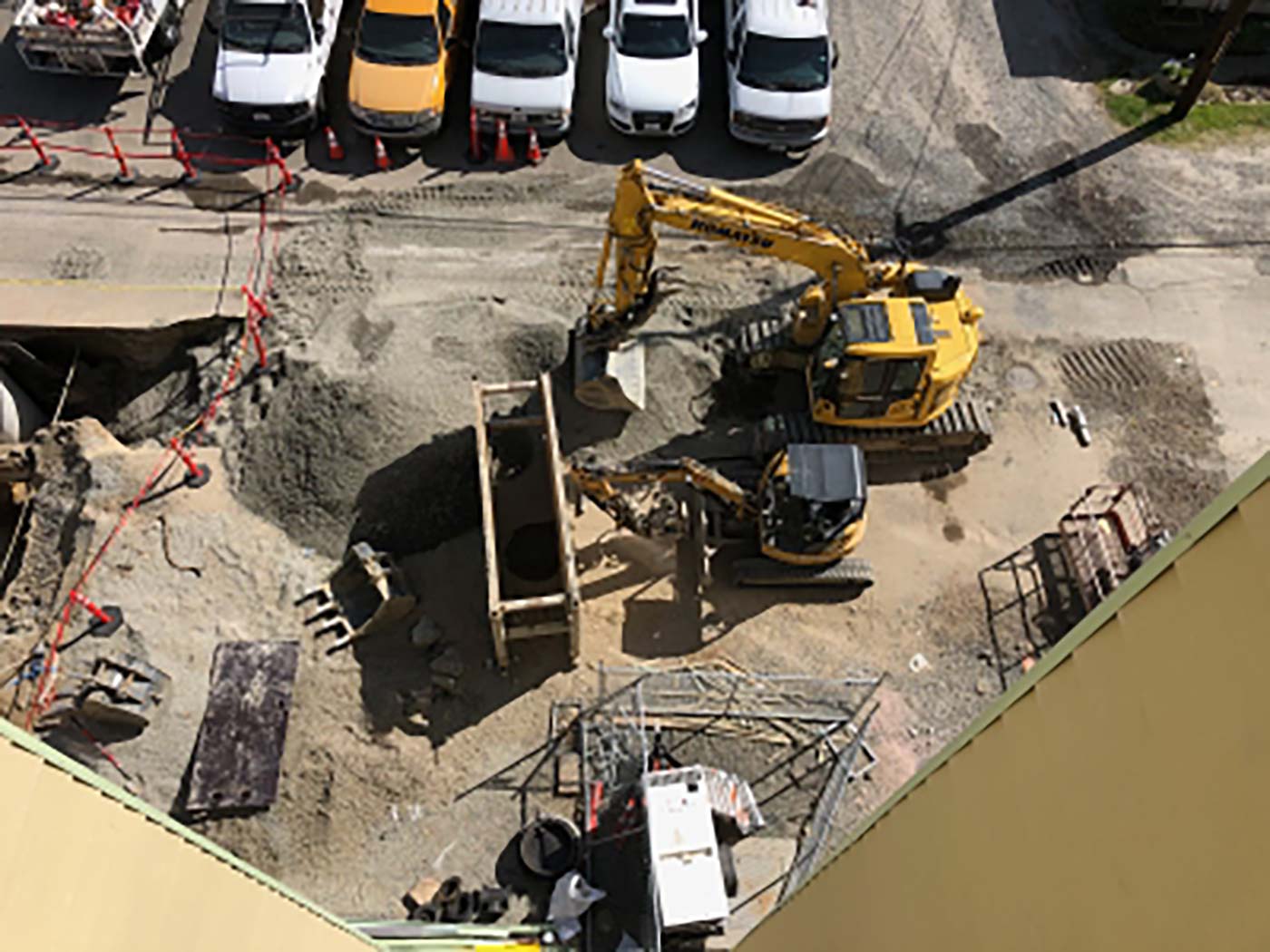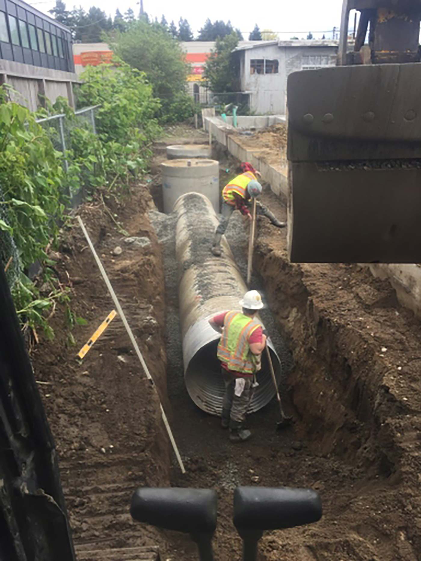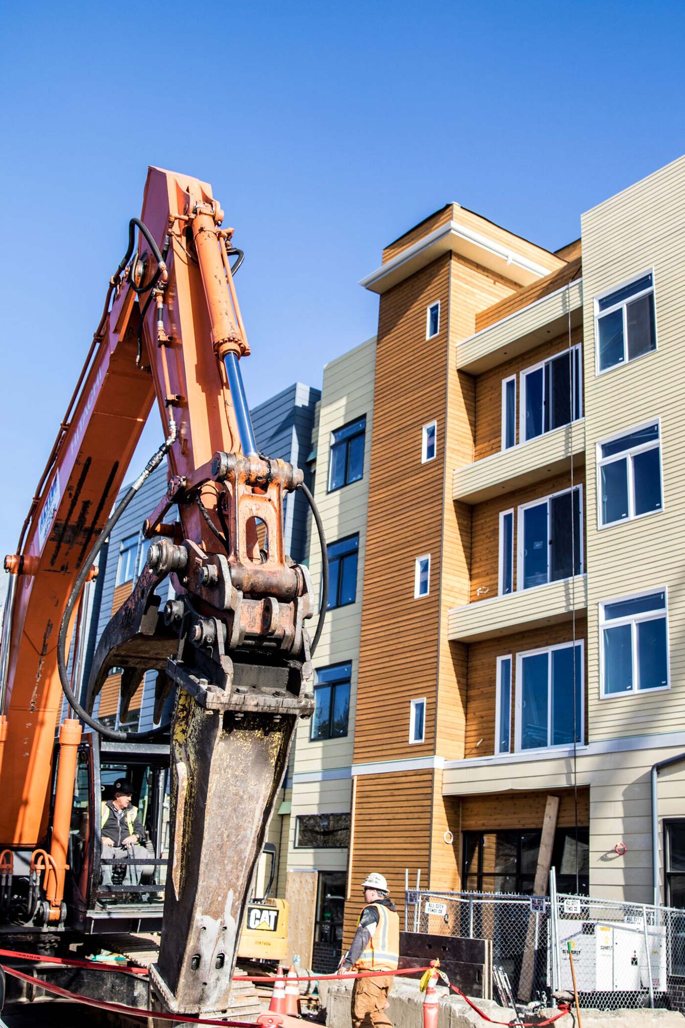 Sitework & utility extensions for new 100+ unit infill apartment complex. Extensive SIP utility work in Street with complete road restoration.