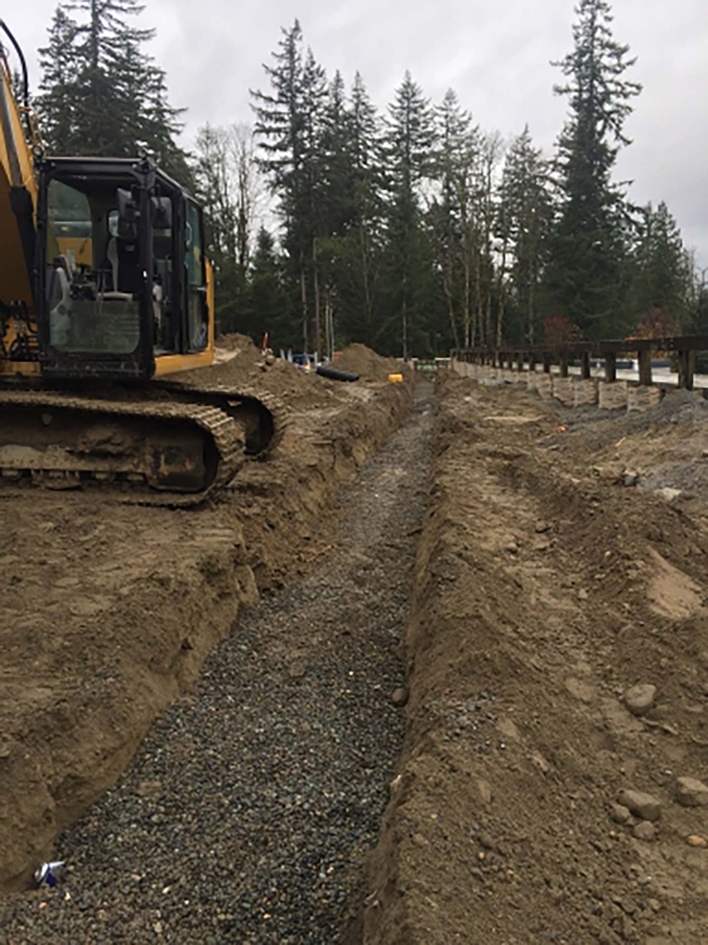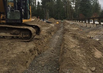 Completed all sitework and utilities for the Snoqualmie casino convenience store. Work included 27,000 CY’s export off site with construction of 400 foot Redi Block wall and 200 foot Soldier Pile wall for retention. Utility work included an 800 foot water main extension with half street restoration.